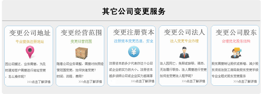 變更公司名稱 變更公司股東(股權) 變更公司法人 變更公司地址 變更公司經營范圍 變更公司注冊資本